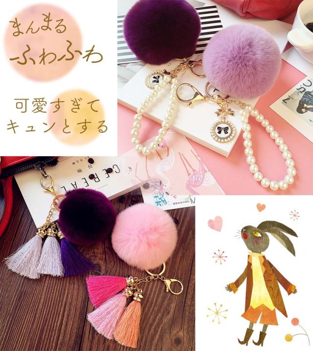 ファー チャーム ポンポン バッグファーチャーム ラビットファー キーホルダー ボール バッグアクセサリー もこもこ