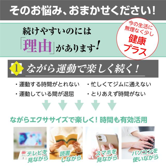 - 持病があって中々 運動的なものが出来ないのですが、週2回通っているリハビリで似たようなものをやっているというので、1日数分でも毎日やれたらいいのかな?と思い購入しました。
