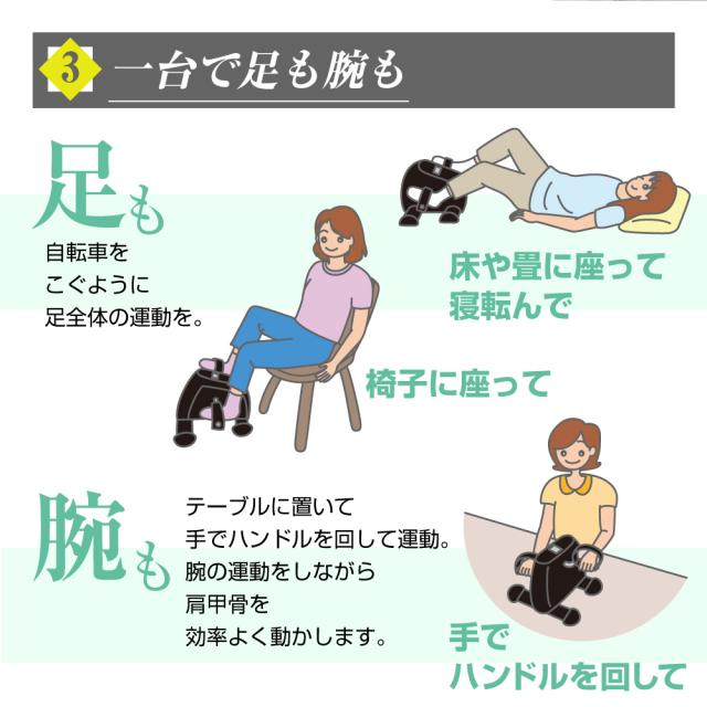 椅子に座った状態や床に寝転んだ状態で運動ができるので、テレビをみながら手軽に運動ができます。