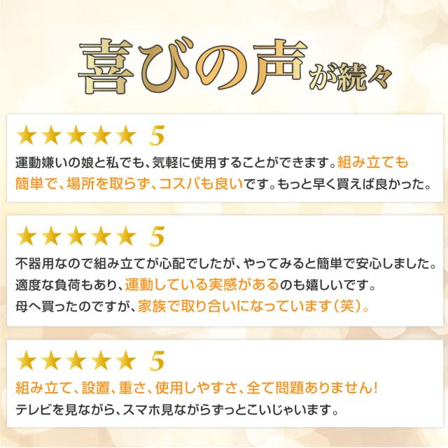 - すっかり足腰が弱くなってしまった実家の母 少しでも鍛えて丈夫になりたいようで今回注文しました 組み立ても簡単だし良い買い物できました