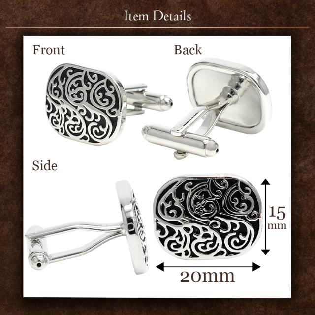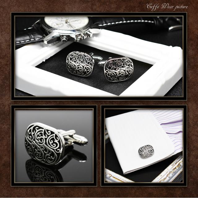 カフス ブラック シルバー柄 カフス カフスリンクス メンズ カフス 銀 黒 カフスボタン トライバル カフリンクス 男性 シルバー ブラック パーティー カジュアル かっこいい