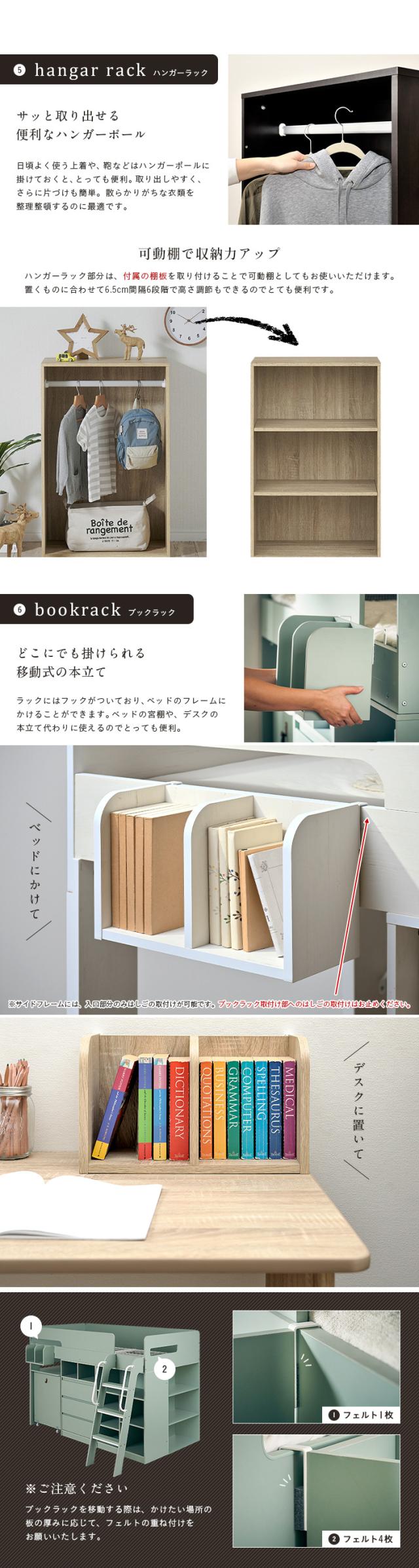 【充実の収納スペース】システムベッド ロフトベッド システムデスク システムベッドデスク デスクベッド ロータイプ ミドル ベッド 机付き 学習机 子供 ハンガーラック 本棚 収納 子供部屋 tale(テイル) 4色対応