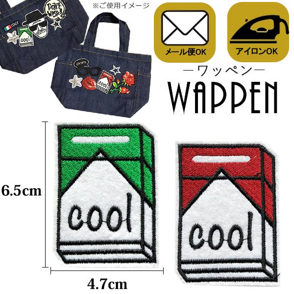 刺繍 ワッペン アイロン接着 縦6.5cm×横4.7cm cool たばこ タバコ アップリケ アイロンワッペン デコ カスタム 手芸母の日 プレゼント ギフト