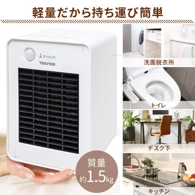 TEKNOS テクノス ミニセラミックファンヒーター 人感センサー 700W セラミックファンヒーター テクノイオン搭載 足元