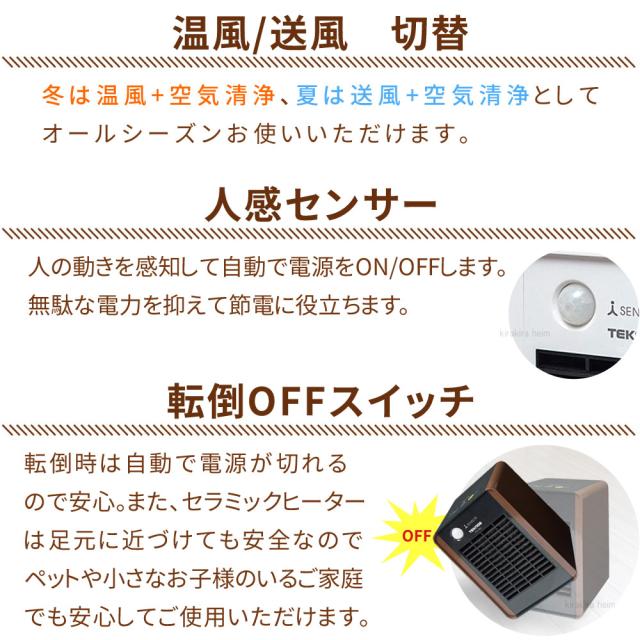 冬は温風+空気清浄、夏は送風で空気清浄としてオールシーズンお使い頂けます。