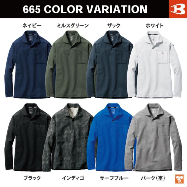 665 長袖ポロシャツ 吸汗速乾 ドライメッシュ ポロシャツ インナー バートル BURTLE 無地 鹿の子 肌触りがいい 豊富なカラー シンプル