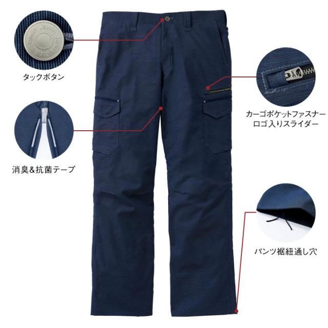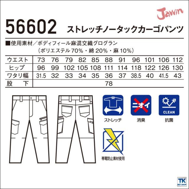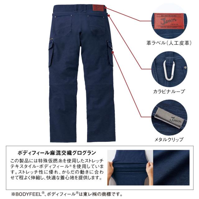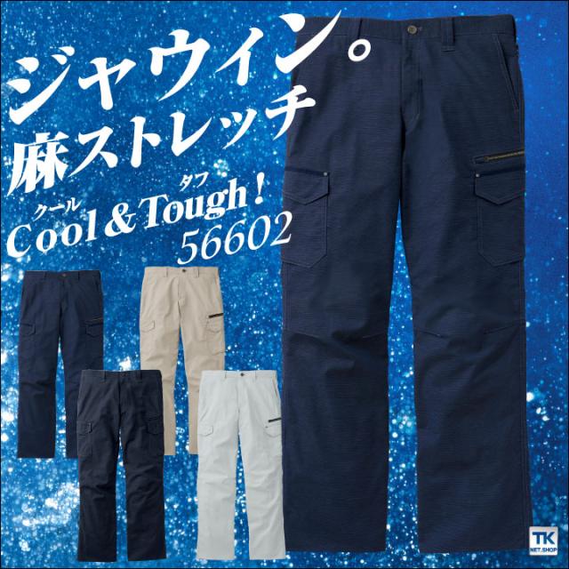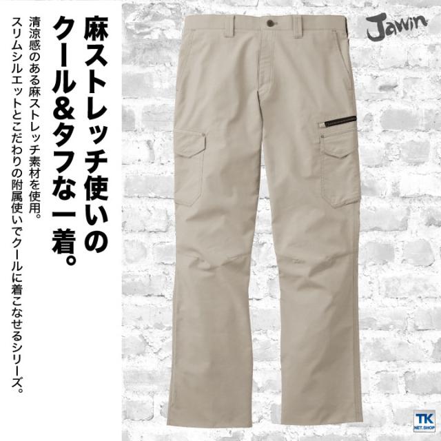 カーゴパンツ ストレッチ 作業ズボン 作業着 作業服 ワークパンツ パンツ ズボン ノータック カジュアル スタイリッシュ 伸縮性 麻 帯電防止 消臭 清涼感 Jawin 自重堂 春夏 jd-56602