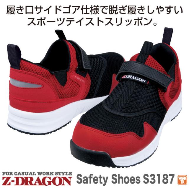 自重堂 セーフティーシューズ スリッポン 樹脂先芯 メンズ 安全靴 安全スニーカー 作業用靴 樹脂芯先 スニーカー シューズ 衝撃吸収 耐滑 反射材 スポーティ Z-DRAGON 春夏 秋冬 jd-s3187