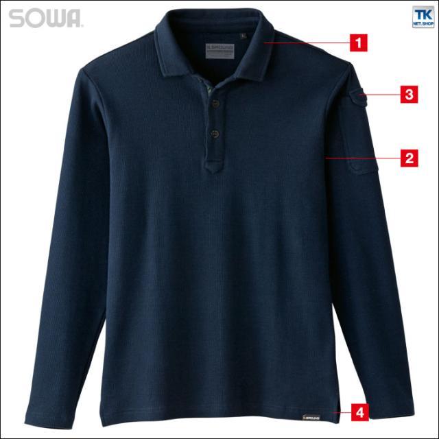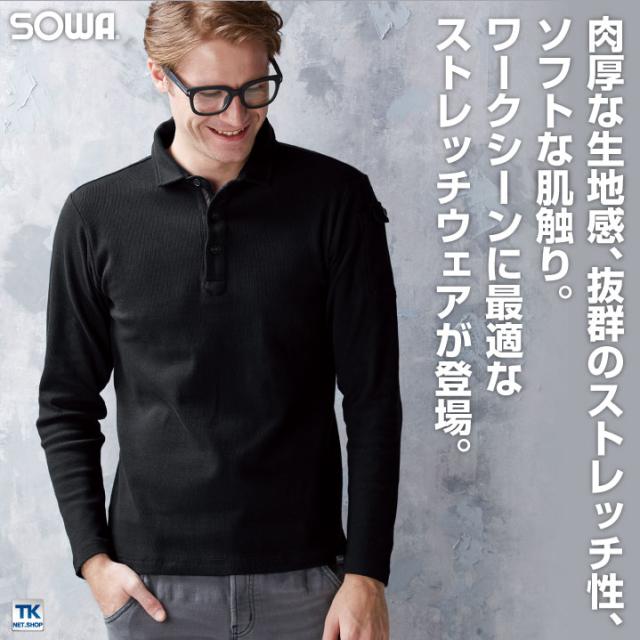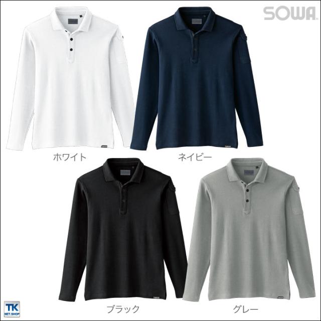 長袖ポロシャツ ストレッチ ポロシャツ 作業着 作業服 作業シャツ 長袖シャツ 長袖 ソフト 消臭 厚手 無地 シンプル SOWA 桑和 G.GROUND 年間 春夏 秋冬 sw-50710