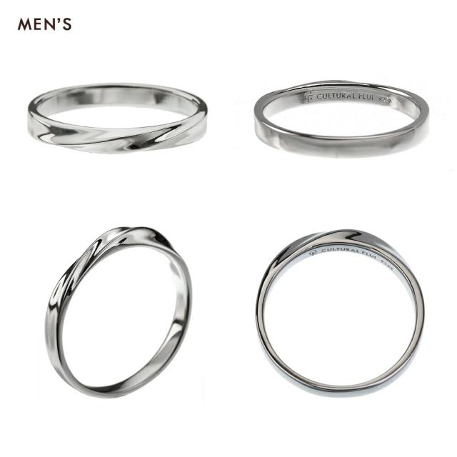 流れるようなラインが美しいペアリング。プラチナ等によく用いられる仕法・ロジウムコーティングにより、高級感のある美しい輝きが楽しめます。シンプルなデザインなのでシーンを選ばず、着ける2人の魅力をさらに引き出してくれる、FLUIらしいペアリングです。