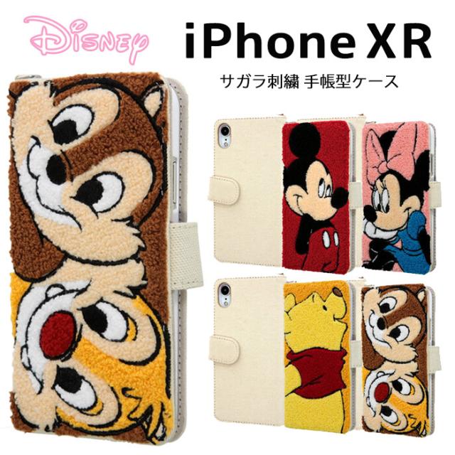 iPhone XR iPhoneXR ケース 手帳型 ディズニー 刺繍 もこもこ タオル地 ミッキー ミニー プーさん チップ&デール スマホケース 布ケース 可愛い 手触り