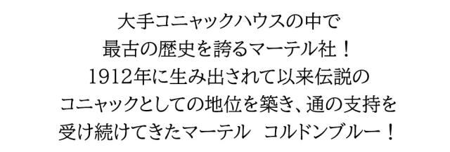 大手コニャックハウスの中で最古の歴史を誇るマーテル社!1912年に生み出されて以来伝説のコニャックとしての地位を築き、通の支持を受け続けてきたマーテル コルドンブルー!