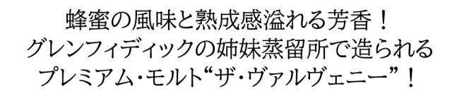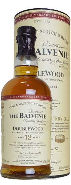 シングルモルト愛好家大注目!ウイリアム・グラント社がグレンフィディック蒸留所の隣に第2蒸留所として1892年創業!伝統的なフロアモルティングから、最終瓶詰めまで一貫して手掛けるバルヴェニー蒸留所の元詰品!このダブルウッドは2種類の樽で熟成させた12年もの!まずファーストフィルとセカンドフィルのバーボンカスクで寝かせ、次に別のシェリーオロロソ樽に移して半年〜12ヵ月熟成熟成させた、中甘口で深みと成熟感を持つ、スパイシーでなめらかでまろやかな味わいのシングルモルト!