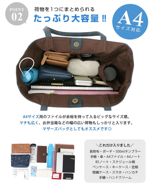 トートバッグ トート レディース マザーズバッグ 多収納 通勤 通学 鞄 大容量 A4 フェイクレザー 【メール便不可】
