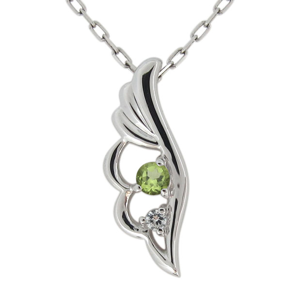 ペリドット・シルバー・ネックレス・レディース・羽根・フェザー・ペンダント
