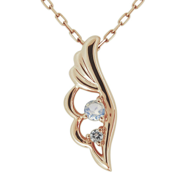 ネックレス・ロイヤルブルームーンストーン・6月誕生石・羽根・フェザーペンダント・18金