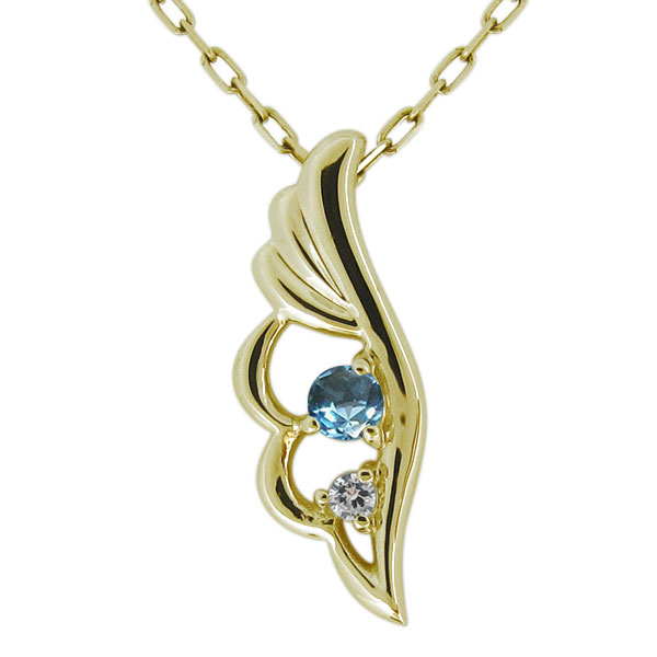 レディースネックレス・羽根・フェザー・ブルートパーズ・ペンダント・10金