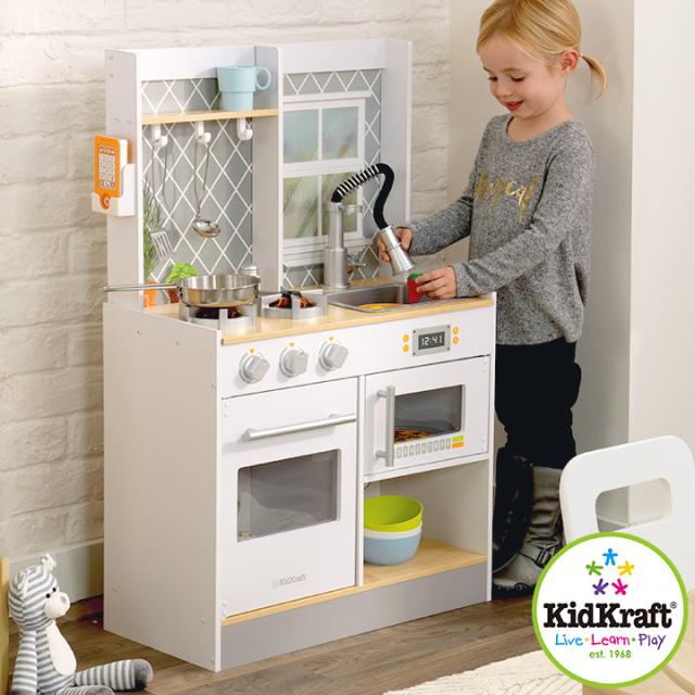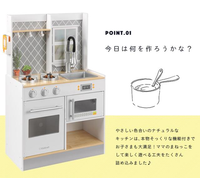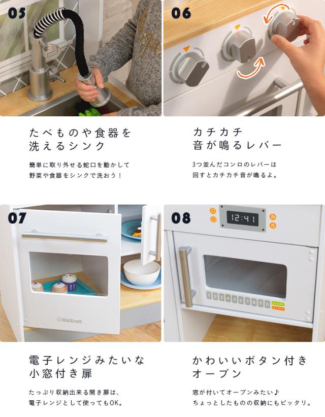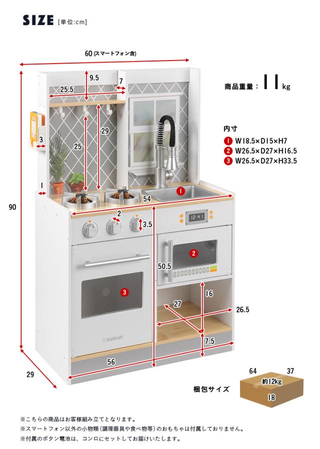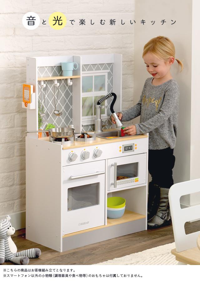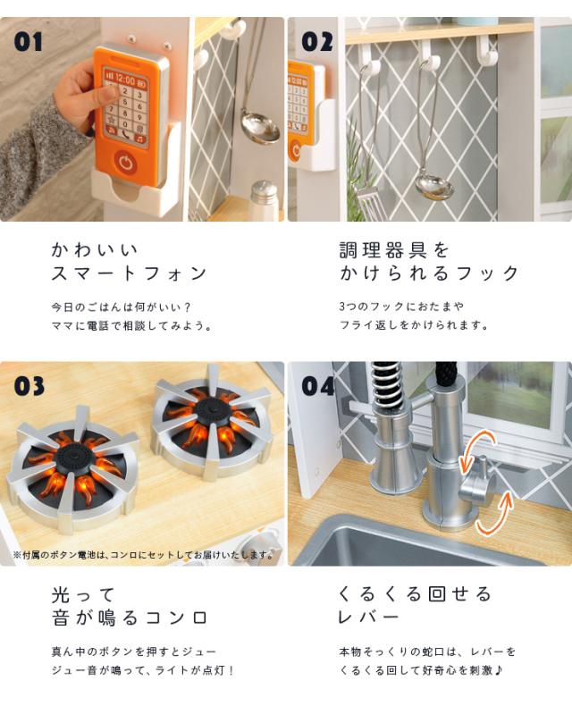 [音と光で楽しむ/CEマーク付き] KidKraft バーナー付きプレイキッチン ままごと お店屋さんごっこ ままごとセット 木製 ごっこ遊びトイ キッチン 音付き ライト点灯 おもちゃのスマートフォン付き