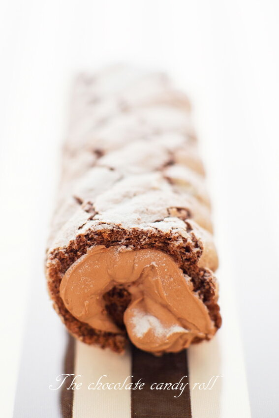 今回のショコラキャンディロールは従来のロールケーキの大きさが直径約10センチですが、その大きさの3分の2の大きさです。長さ約12センチ。 |