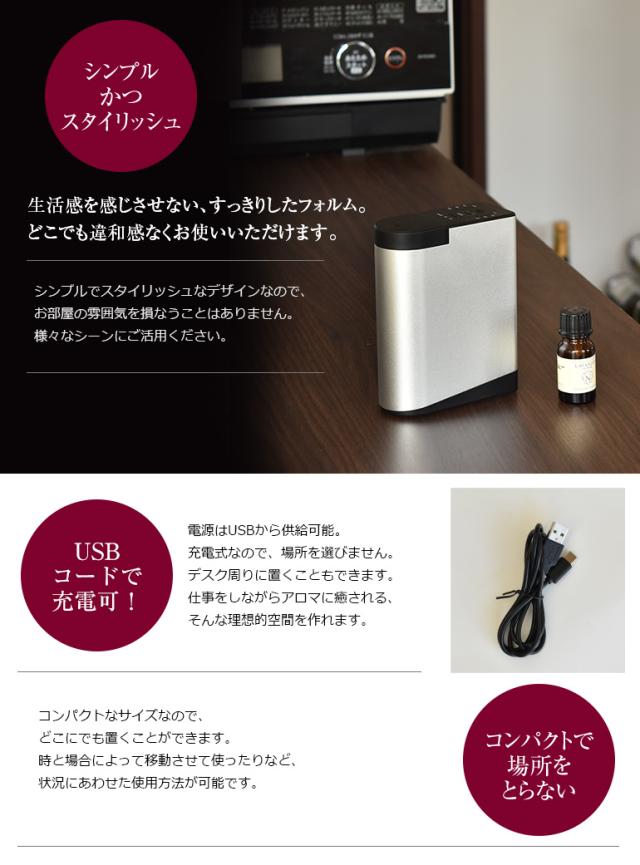 ディフューザー ポータブルネブライザー式 アロマ ディフューザー 選べる精油2本付 アロマ 充電式 アロマオイル 精油 水なし