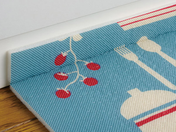 マットの端の折り目をキッチンの立ち上がり部分にあわせて折り返すことができるので、汚れが溜まりやすいキッチンの角もお掃除ラクラクです。