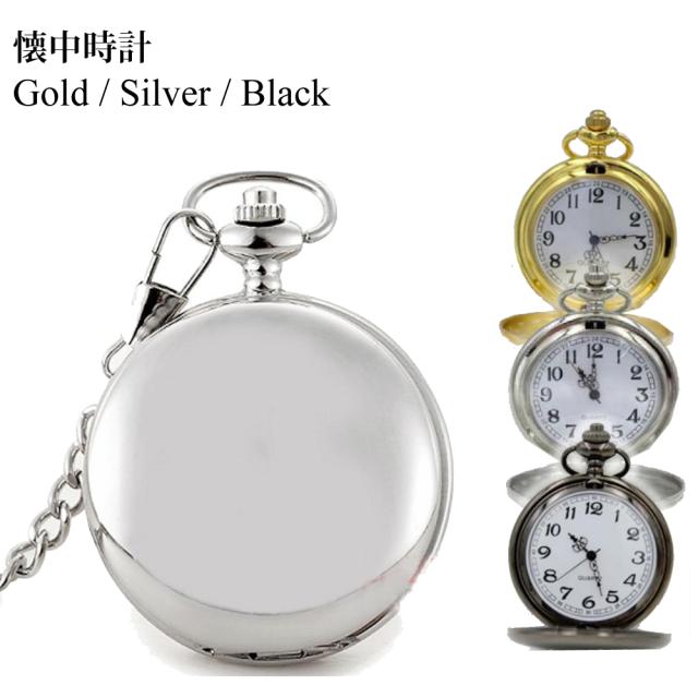 懐中時計 クロック クォーツ式 アラビア数字 ハンターケース クリップ式チェーン付属 お洒落 大正浪漫 ロマン グッズ シンプル 無地 執事