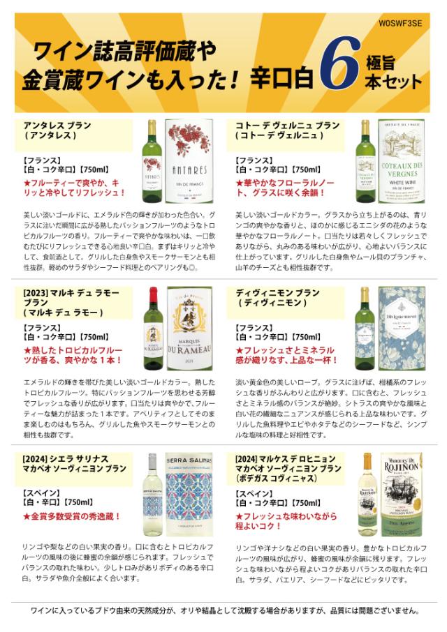 ワイン ワインセット ワイン誌高評価蔵や金賞蔵ワインも入った辛口白6本セット 送料無料 ^W0SWF3SE^