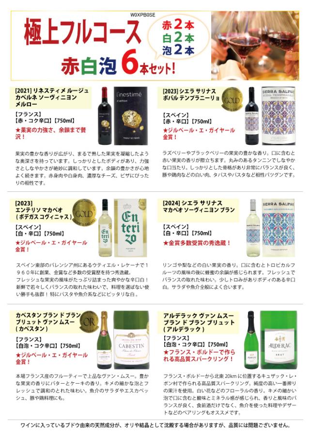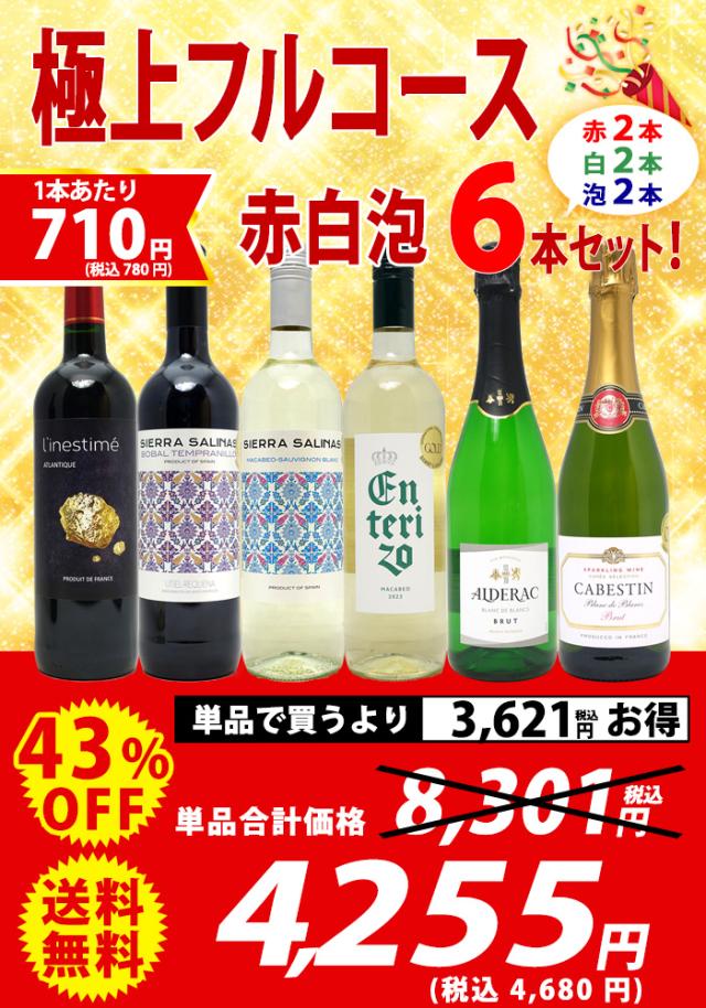 ワイン ワインセット 極上フルコース 赤白泡6本セット (赤2本、白2本、泡2本) 送料無料 ミックス mix ^W0XPB1SE^