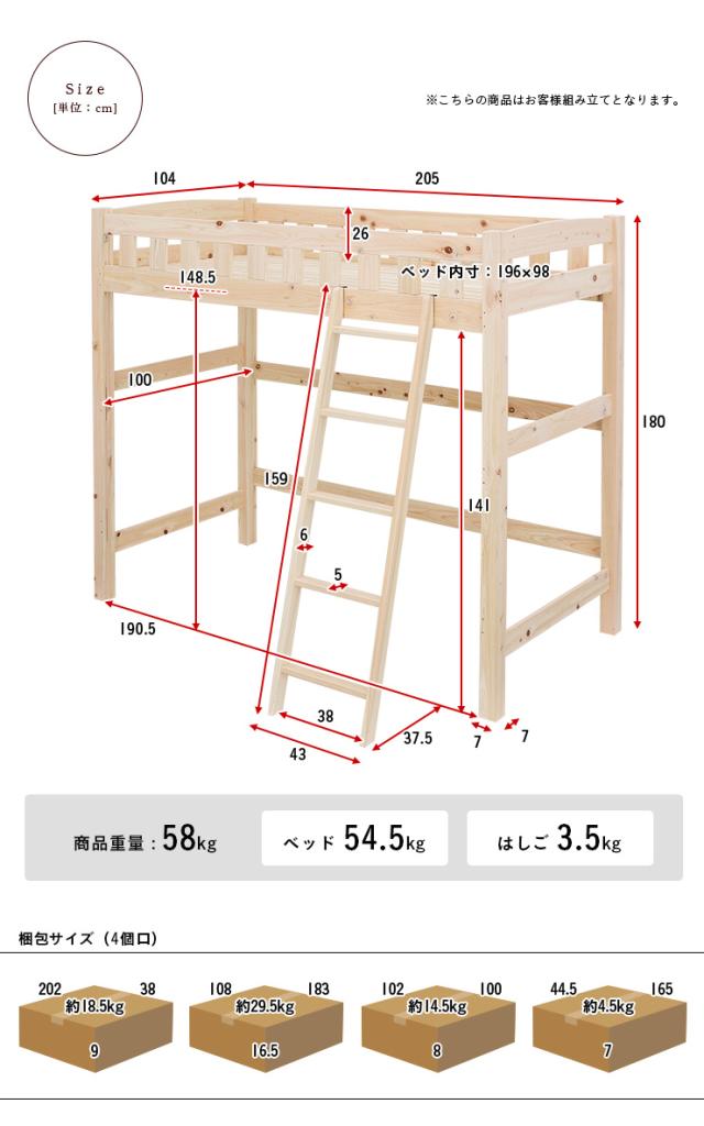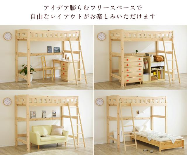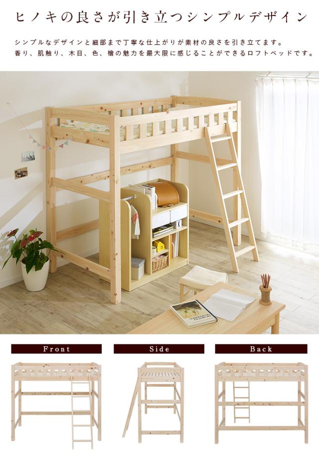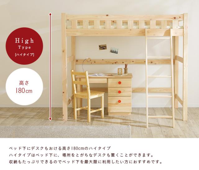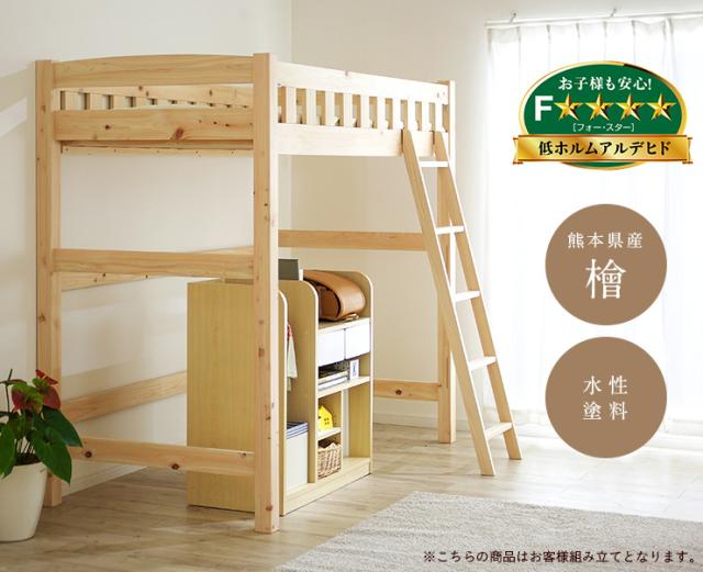 【5年保証/国産/熊本県産ヒノキ使用】ハイタイプ ロフトベッド 香(コウ) H180cm ロフトベット ロフト ベット すのこベッド すのこ 子供用 大人用 日本製 木製 子供部屋 ナチュラル シンプル おしゃれ
