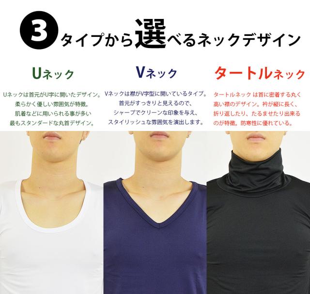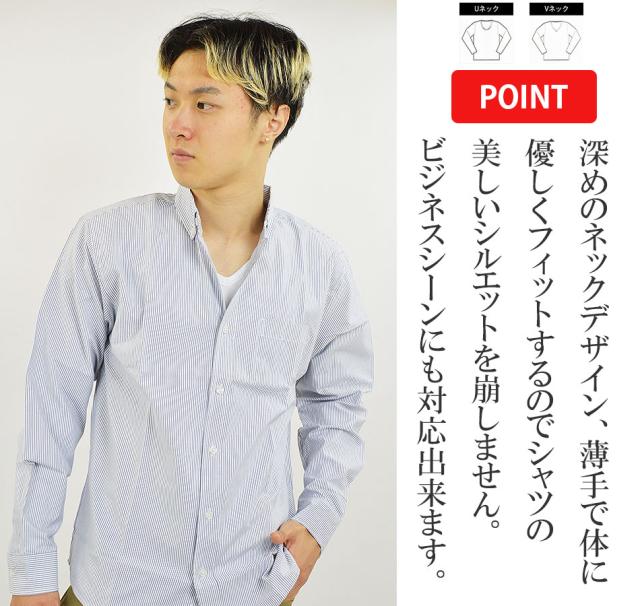 ■Uネック・Vネックは、深めのネックデザイン、薄手で体に優しくフィットするのでシャツの美しいシルエットを崩しません。ビジネスシーンにも対応出来ます。