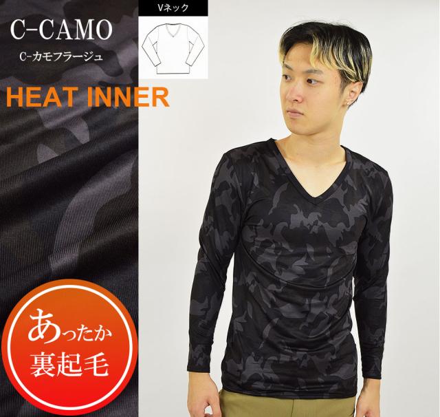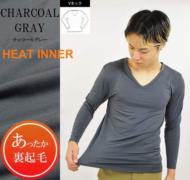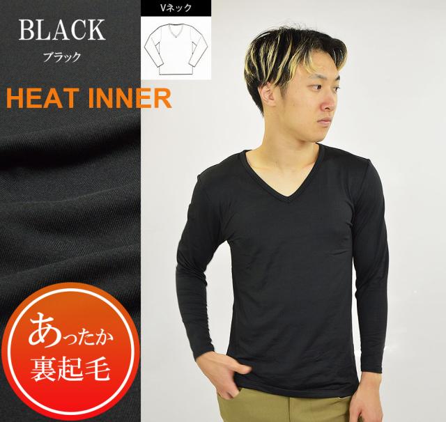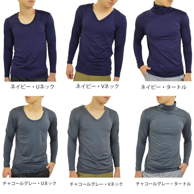 Tシャツ メンズ 裏起毛 ストレッチ 生地 冬 あったか 保温 ヒートインナー 9分袖 長袖 下着 Vネック