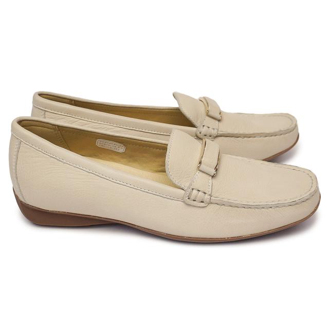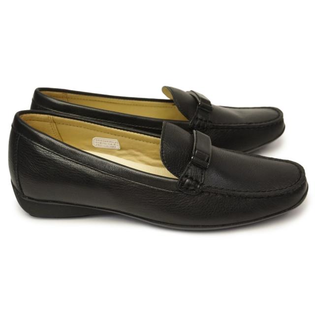 シンプルなデザインと上質な素材感で女性らしさを演出する「リーガル」。バックル飾りが特徴のモカシンカジュアルシューズです。
