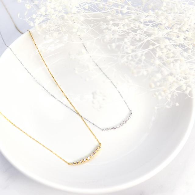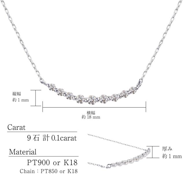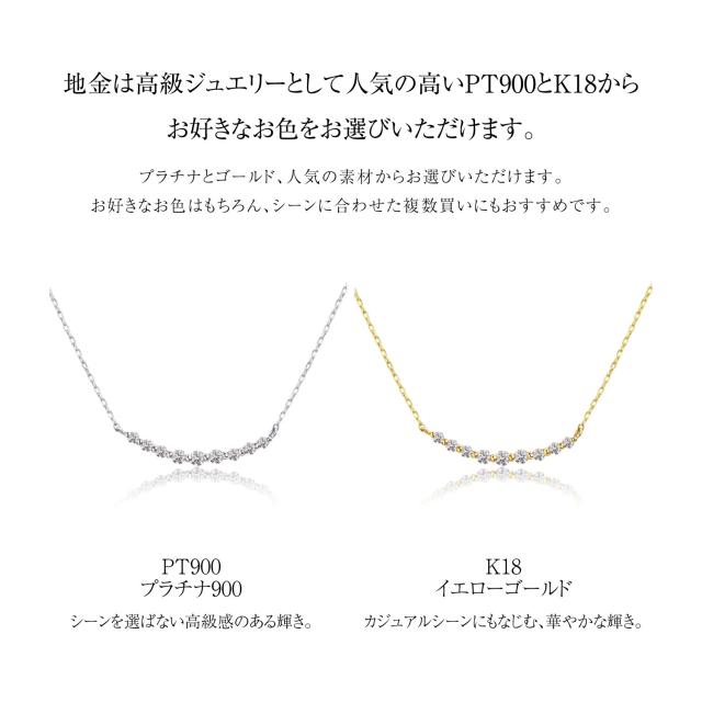 輝くダイヤモンドラインのプラチナダイヤモンドネックレス。0.1ctダイヤモンドの上品で繊細な輝きは様々なシーンで大活躍してくれます。