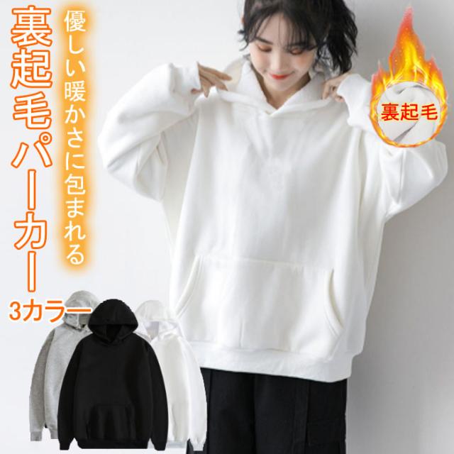 【在庫限りの今だけ送料込】裏起毛 パーカー プルオーバー 白 黒 グレー 暖か 秋 冬 アウター カジュアル