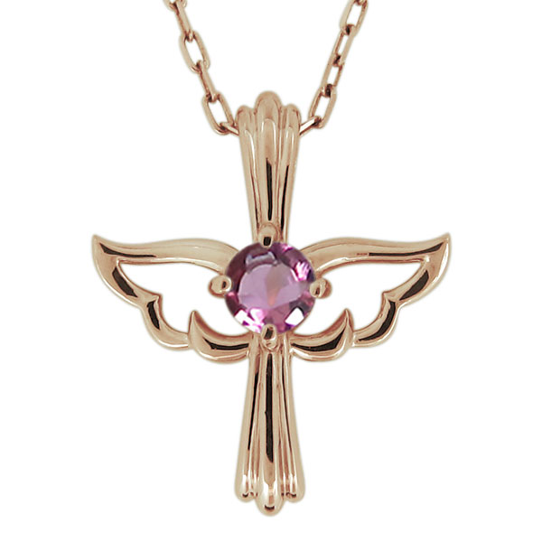 10月誕生石ピンクトルマリンを使用した10金製の、羽根(フェザー)・クロスモチーフネックレス・ペンダントです。