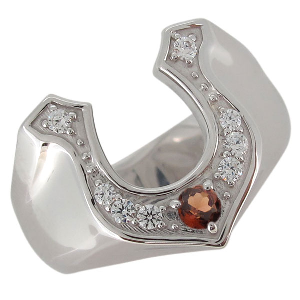1月誕生石ガーネットを使用したシルバー製の、馬蹄(ホースシュー)モチーフのメンズリング(指輪)です。