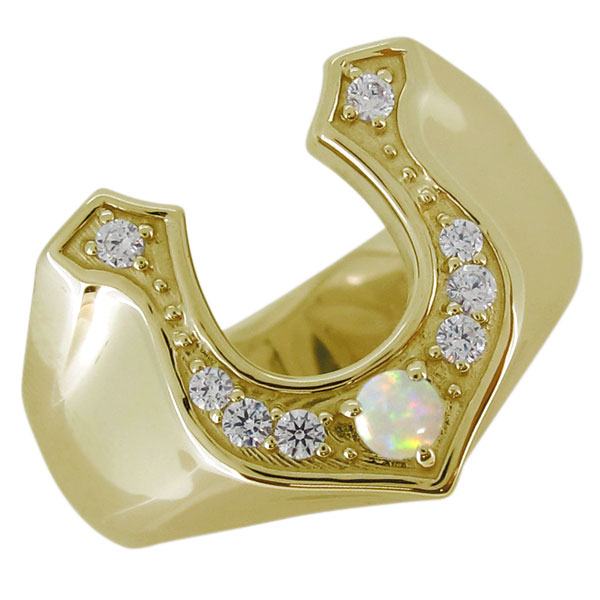メンズ 指輪 馬蹄 ホースシュー 10月誕生石 オパール 18金