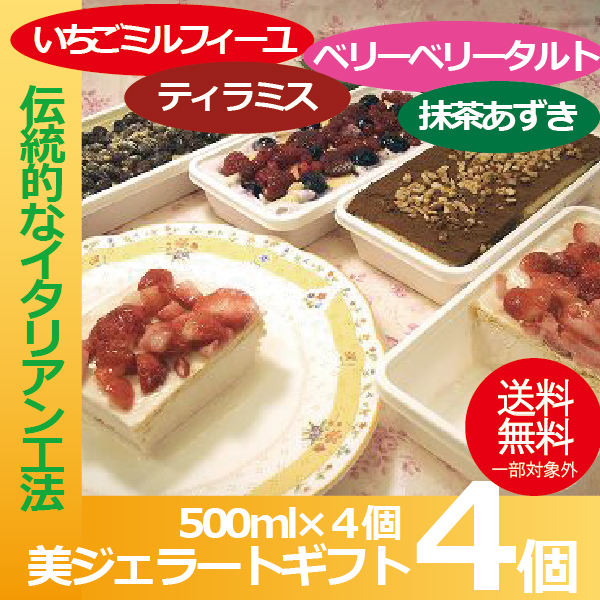 いちごミルフィーユ、ティラミス、 ベリーベリータルト、抹茶あずき 各500ml×1個 合計4個 【商品説明】