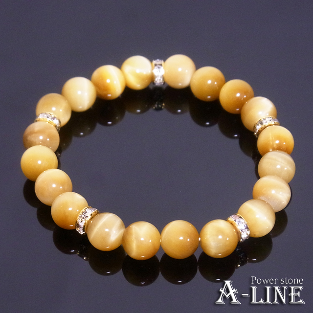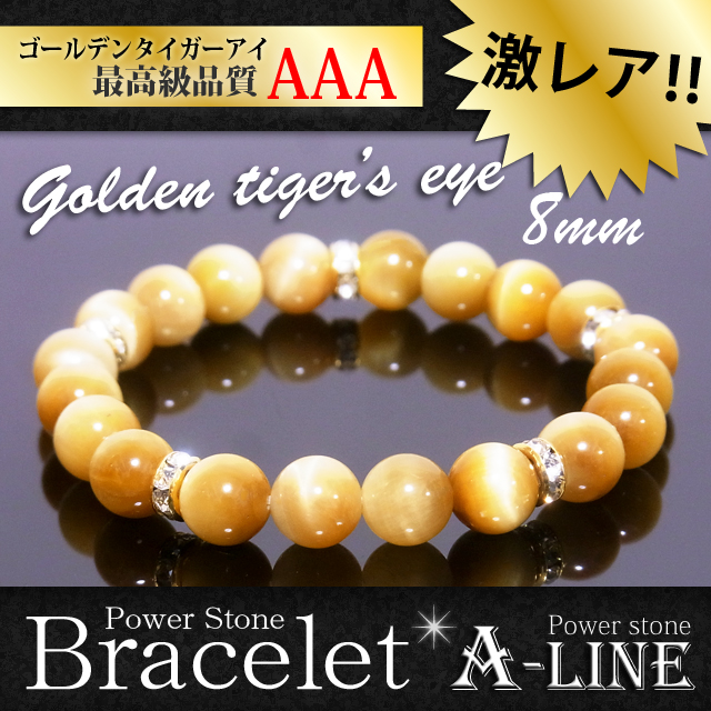 AAAゴールデンタイガーアイ8mm・合金ロンデル・国産高級オペロンゴム