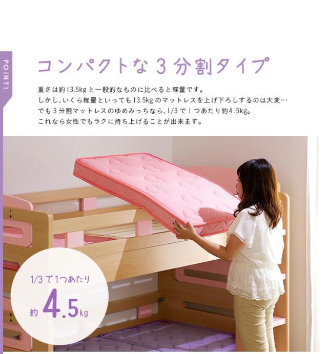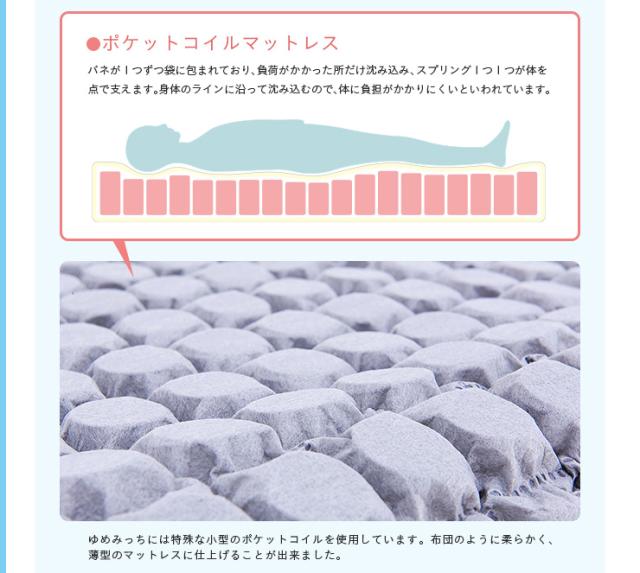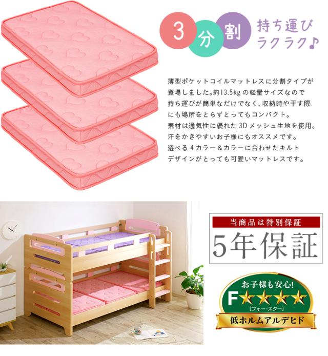 【5年保証】マット マットレス 3分割 シングル ポケットコイルマットレス 薄型マットレス 圧縮マットレス 二段ベッド用 三段ベッド用 システムベッド用 S ゆめみっち 4色対応