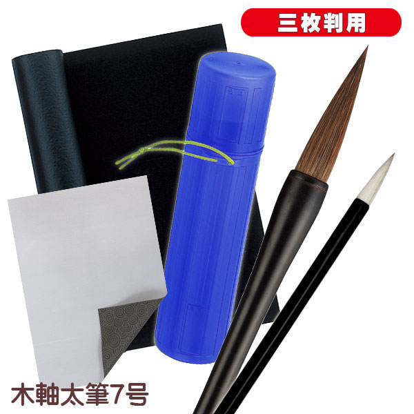 書初めセット 木軸7号筆 小学生/中学生 筆筒/下敷きケース付き 三枚判用
