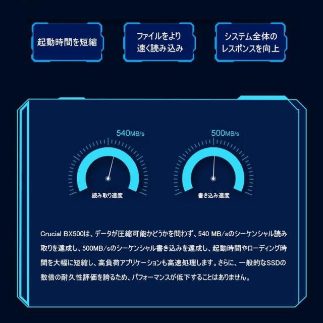 Crucial BX500 SSDはパソコンの速度、耐久性、効率性を向上させます。