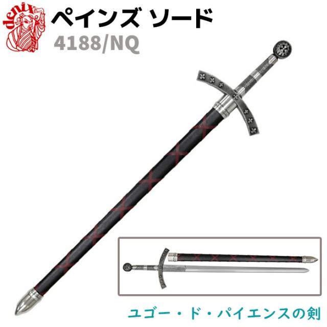 模造刀 ペインズ ソード シルバー/ブラック DENIX デニックス 4188/NQ 112cm ファースト 十字軍 ユゴー・ド・パイエンス レプリカ 剣 刀 ロングソード コスプレ フランス 大型宅配便160サイズ ポイント消化
