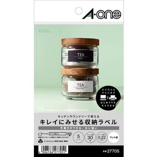 エーワン 27705 キレイにみせる収納ラベル 水に強い マット紙 6面
