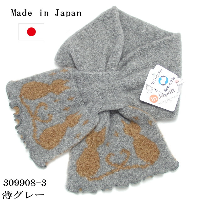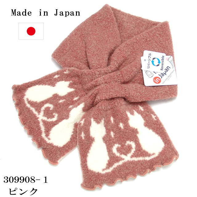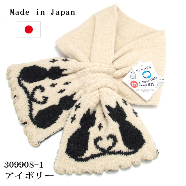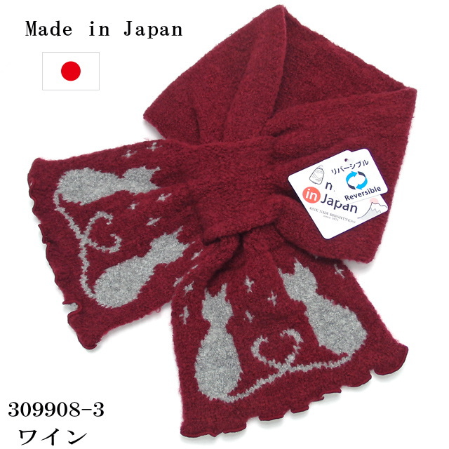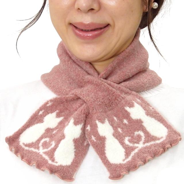 マフラー 差し込み 猫 日本製 ミニマフラー スカーフ 猫雑貨 猫グッズ 猫柄 キャット レディース かわいい おしゃれ ギフト