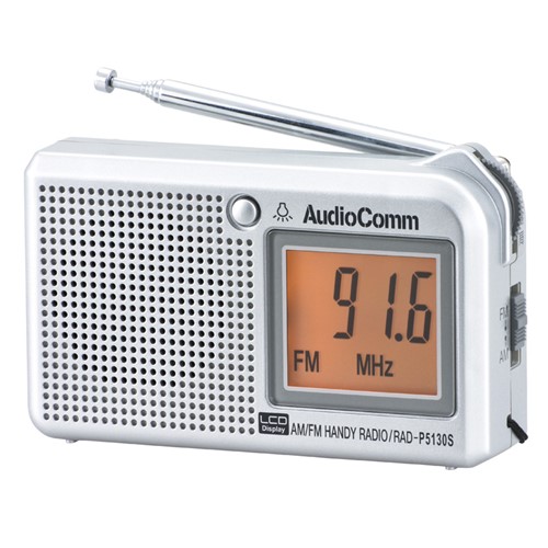オーム電機 RAD-P5130S-S AudioComm AM/FM 液晶表示ハンディラジオ ヨコ型