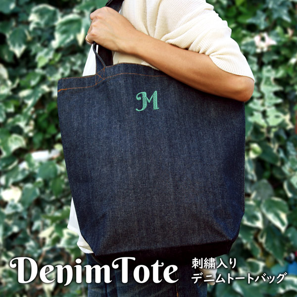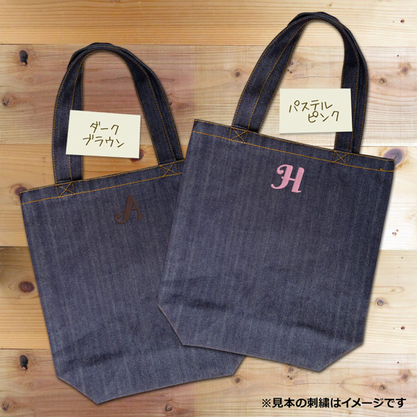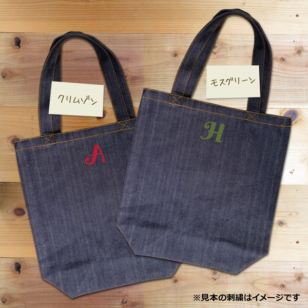 トートバッグ デニム イニシャル入 刺繍 オリジナル ショッピングバッグ 中