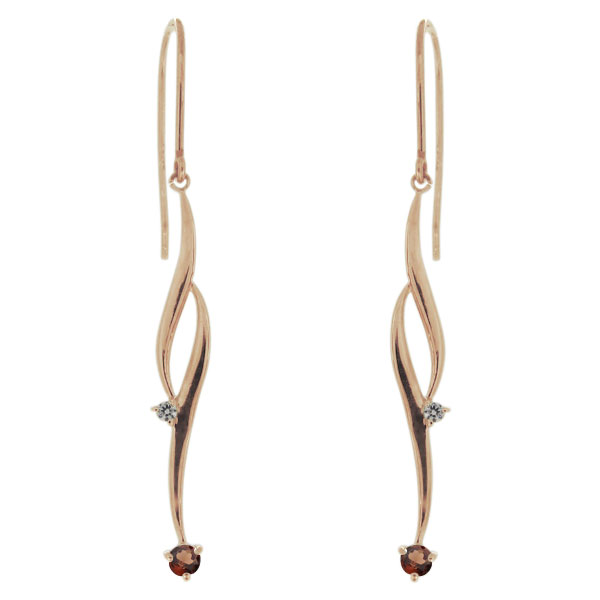 1月誕生石ガーネットを使用した18金製の、シンプルデザインフックピアス(アメリカンフック)です。