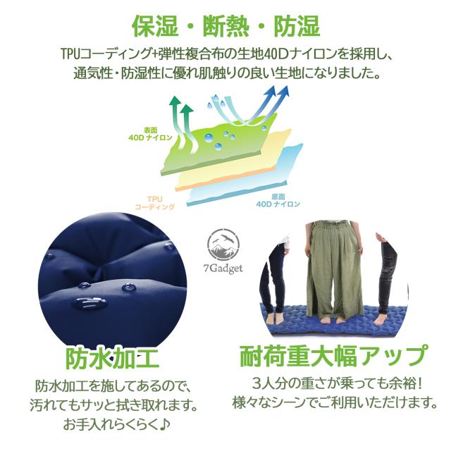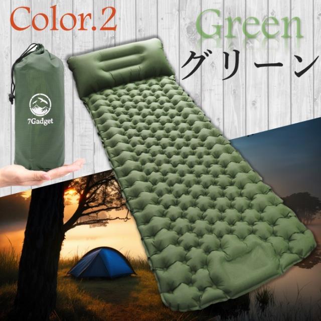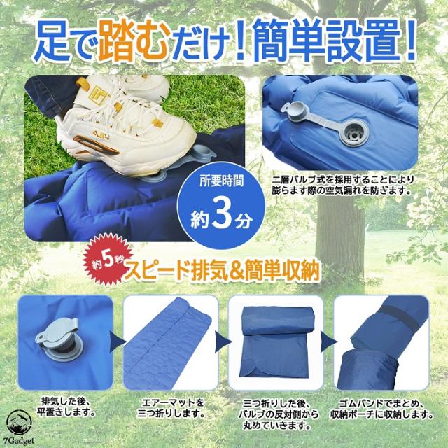 【7Gadget】 キャンプマット 2個セット エアーマット キャンプ エアマット アウトドア エアーベッド 車中泊 軽量 コンパクト フットポンプ式 連結可能 枕付き 補修シール付き