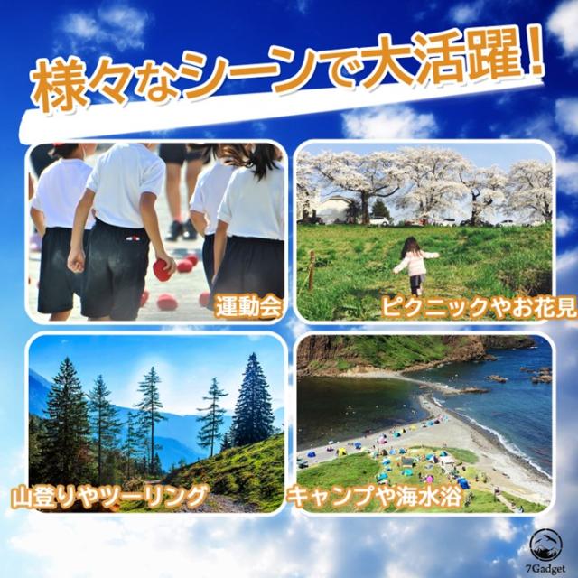 ピクニック・テント・シュラフ・花見・運動会・アウトドア・キャンプ・海水浴場・山登り・公園・旅行・車中泊・釣り・ハイキング・ハンモック・事務所・休憩・地震・災害などの様々なシーンでおすすめです。